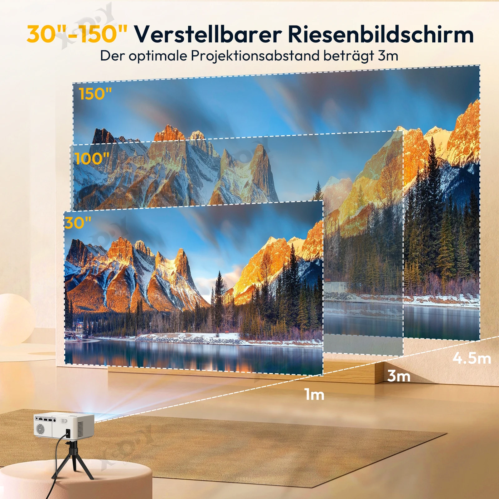 - Projection Distance: 1-4.5m
